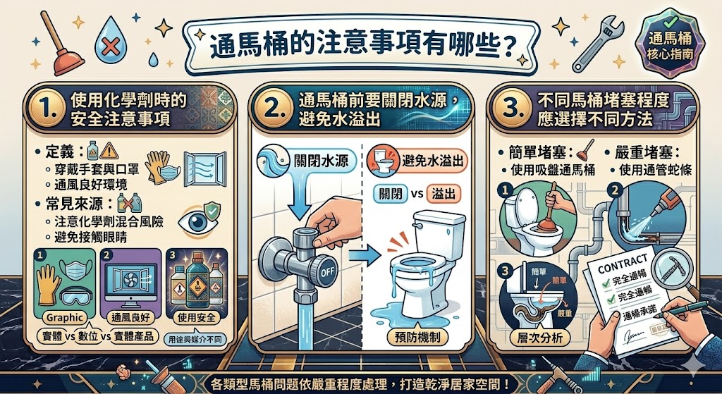 A:化學劑雖然有效,但若使用不當,可能會對馬桶內部或水管造成腐蝕,甚至產生危險氣體,因此使用時需要小心,並遵循使用說明